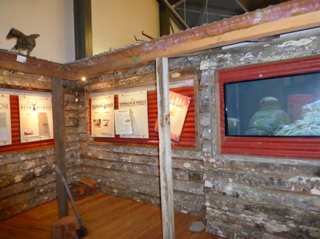 The next exhibit is set up a bit like a hut and has learning stations that look like books talking about what brought people out to the west coast of the South Island in New Zealand (gold) and how problematic deer became after being introduced to the island (apparently animals should never be introduced to New Zealand – it always goes wrong so it seems).