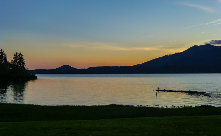 Oh, wait – but the day wasn’t quite over yet. If you can get back to Lake Quinault before the sun goes down, you’ll be treated to a gorgeous sunset. We enjoyed seeing the mountains framed by the sun while sitting on our porch enjoying a glass of wine while our daughter slept inside. Since the sun doesn’t set until close to 10 in the summer, it was so quiet and peaceful.